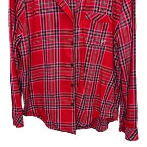 Victoria's Secret Red Plaid Long Sleeve Button Up Pajama Top S