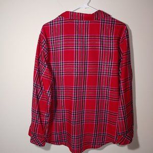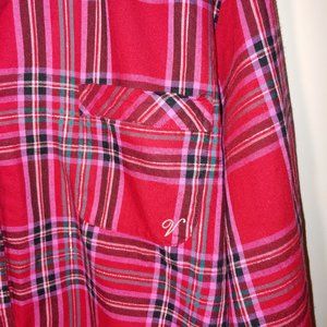 Victoria‘s Secret Red Plaid Long Sleeve Embroidered Pajama Shirt Size L