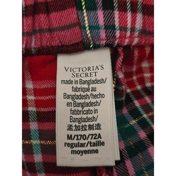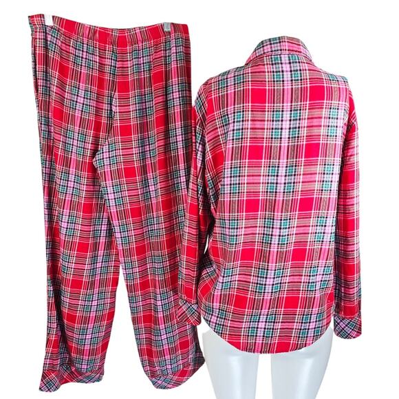 Victoria's Secret Red Plaid Pajama Set Button Up Top and Pants Set M