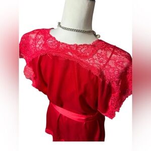 Victoria’s Secret Red Satin Rhinestoned Lace Chemise with Matching Robe M Medium
