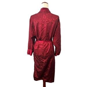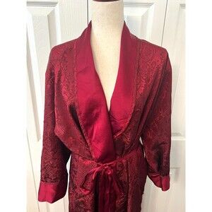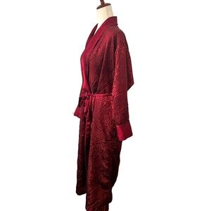 Victoria's Secret Red Satin Robe Women's S Silky Jacquard Floral Sleepwear Relax