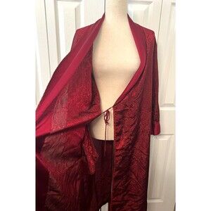 Beautiful red satin robe, has a floral woven print with solid red trim. Women's size Small