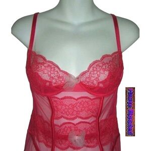 Victorias Secret Red Sheer Lace Bows Garter Cami Sexy Boudoir Pin Up Negligee