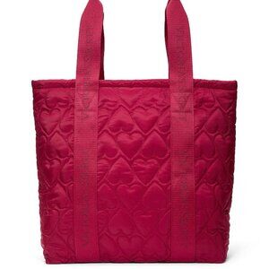 Victoria's Secret Red Stitched Hearts Quilted Puffer Tote Large Shoulder Bag