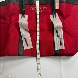 This elegant tote from Victoria's Secret features a vibrant red body with striking black trim, offering a sophisticated and spacious design perfect for everyday use.