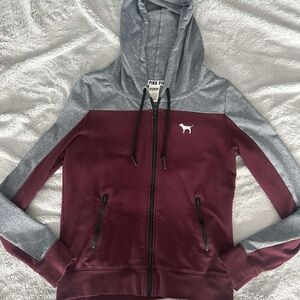 Experience the perfect blend of style and comfort with this Victoria's Secret jacket. Crafted in a striking burgundy and gray color scheme, this piece is ideal for both casual and athletic wear. Its contemporary design and high-quality materials ensure you stay fashionable and cozy throughout the day.