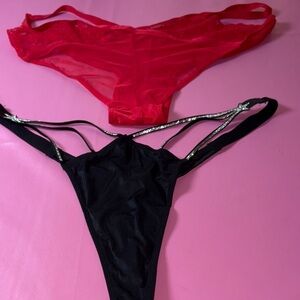 Charming panty set with red lace and playful pink prints. Ideal for everyday elegance.