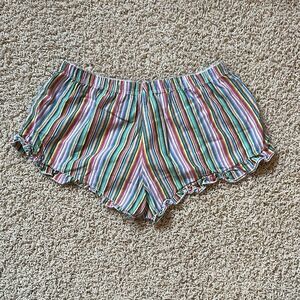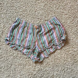Experience ultimate comfort with these high waist sleep shorts from Victoria's Secret, featuring a vibrant red and pink color palette. The playful ruffled hem adds a touch of femininity, making them perfect for lounging in style.