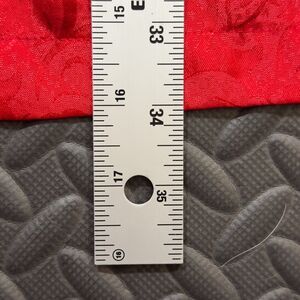 This Victoria's Secret robe is designed for women and features a stylish red satin jacquard print with a kimono-style open front and short sleeves. The lightweight fabric and one-size fit make it comfortable for lounging at home during the summer and spring seasons. Easy to care for with machine washable polyester material, this robe exudes a luxurious feel perfect for outdoor relaxation.