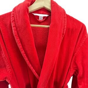 Victoria's Secret Robe Womens XS S Red Terry Cloth Cotton Cozy Long Belted Spa