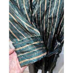 Victorias Secret Robe XS/S Damask Green Striped Satin Tie Front Vintage 90s Rare