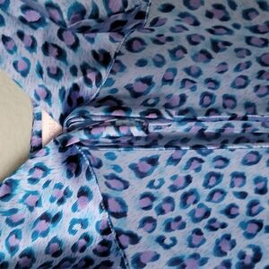 Y2K. Blue cheetah/ leopard/ animal print with purple. Cups have a satin feel, the rest is a chiffon like lightweight fabric. Ties at the chest, splits open in the front. adjustable straps. Excellent condition. Pink label. 100% polyester. Girly, flirty, slinky, seductive, soft girl, baddie, boujee, Y2K, mobwife, coquette