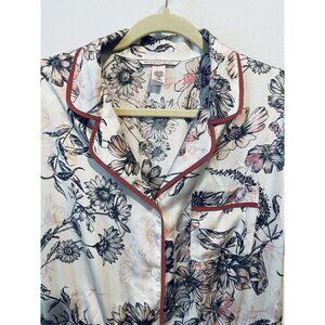Victorias Secret Romper Womens Large Pink Stiped Floral Satin Ribbon Tie Flirty