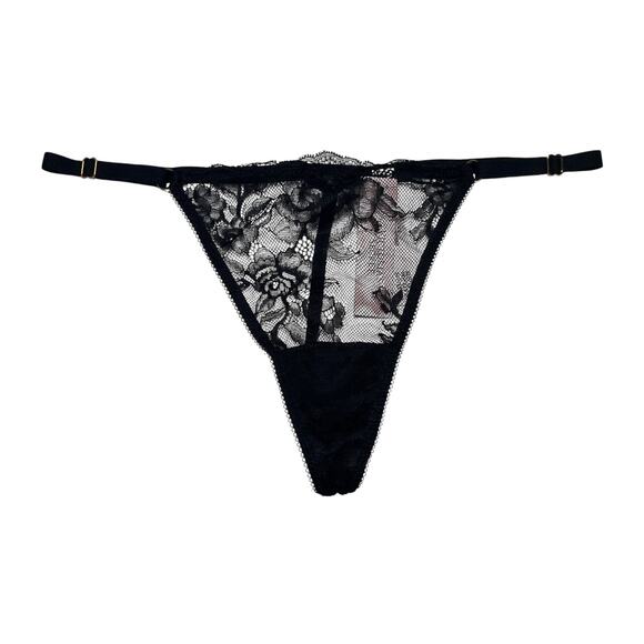 Victoria's Secret Rose Lace Adjustable V-String Panty Black Size Medium