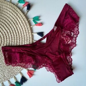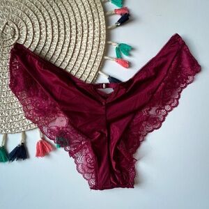 Victoria's Secret Very Sexy Rose Lace-Trim High-Leg Thong Panty Campari Red S NEW