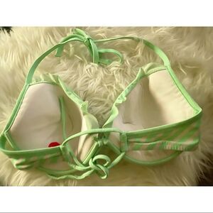 ✨ Mint & White striped bikini top with green ruffle trim.