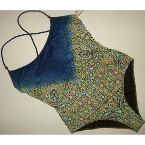 Victoria's Secret S ONE-PIECE MONOKINI+ROMPER SET MOSAIC GARDEN GREEN teal BLUE