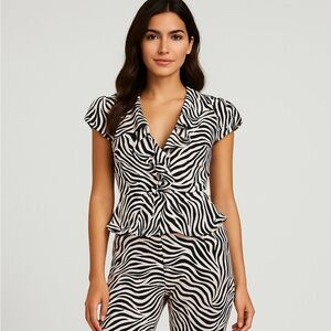 Victoria’s Secret SET Y2K Zebra Print Ruffle Pajama Set Sheer Lounge Pants top S