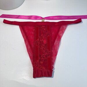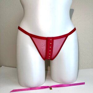 Victoria's Secret SEXY Red Mesh Lace Velvet Trim Brazilian Panty NWT