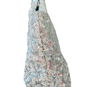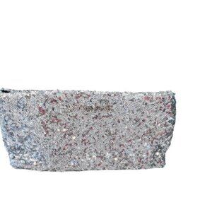 Victorias Secret SILVER Sequin Clutch Makeup Evening Bag Purse GOLD Zip Pebble