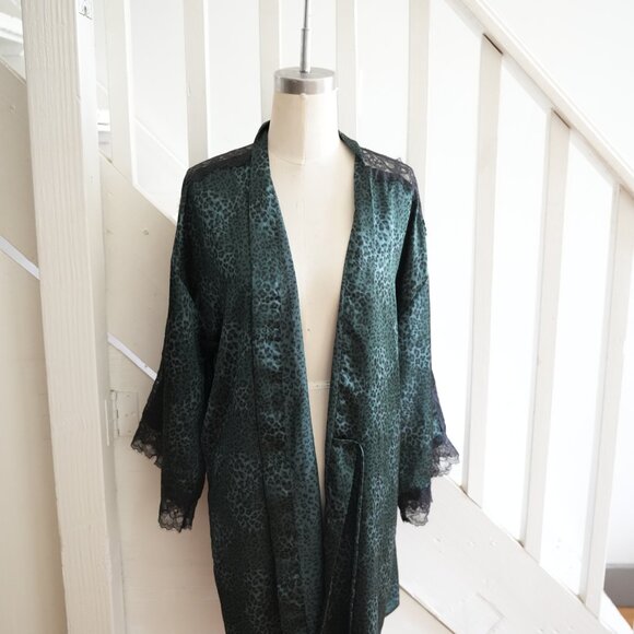 Victoria’s Secret Satin Leopard Robe • Size M/L • Emerald Green