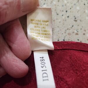 Adjustable straps, leg slit, sheer lace and sequin top. Beautiful red damask patterned fabric, great for valentine's day.