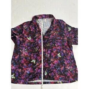 Victorias Secret Satin Notch Pajama Top Womens Large Floral Butterfly 2XL