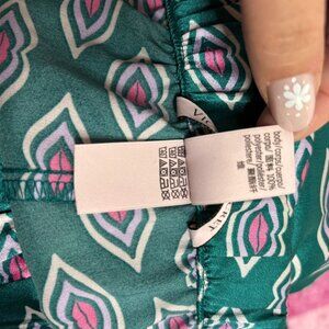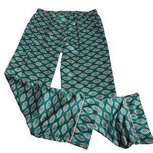 Victorias Secret Satin Pajama Pants Large Green Pink Lips Kiss Elastic Waist