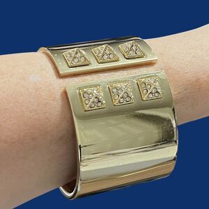 Victoria's Secret Scandalous Bracelet Gold Tone Clamper Cuff Rhinestone Wide