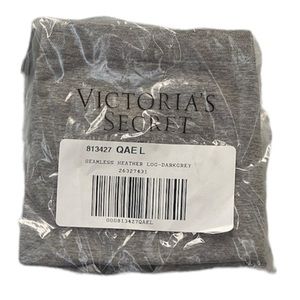Victoria’s Secret seamless bikini panty in heather gray. Soft stretch fabric offers a smooth, no-show fit with logo waistband. New and sealed in original packaging.