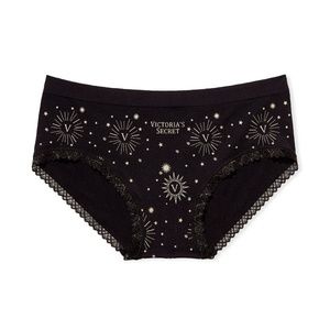 Victoria's Secret Seamless Foil Hiphugger Panty Black with Foil Graphic NEW