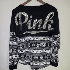 Victorias Secret Sequin Sweatshirt Winter Snowflake Black And White Size Small
