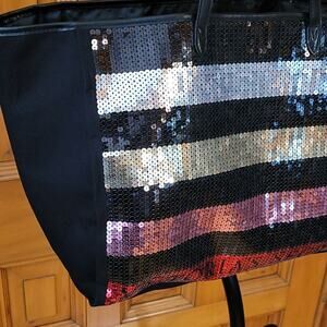 Victoria's Secret Sequin Tote Carryall Bag Large Black Pink Red Silver Gold