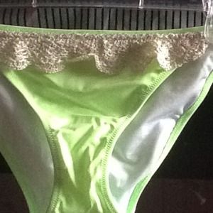 From Beach Sexy Lace-Trim Bikini Bottom Green with Gold Lace, regular price $$24.50. Unique, Limited Edition, brand New with Tags, on Sale for $16.00, Addtl discount if you bundle, NO TRADES, NO PP, PRICE FIRM. Brand new.