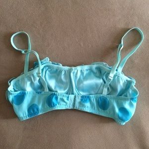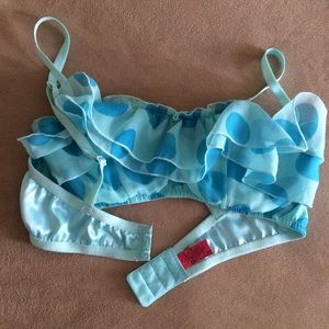 Ruffle front blue polka dot bra. Great condition as shown by close up of band and straps.
