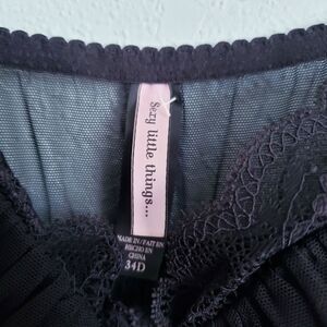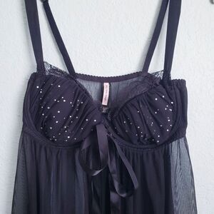 Victoria's Secret Sexy Little Things Black Lace Rhinestone Babydoll Tank 34D