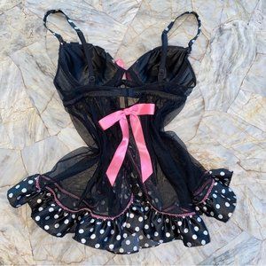 Victoria’s Secret “Sexy Little Things” Polka Dot Apron Babydoll Slip 34B Rare