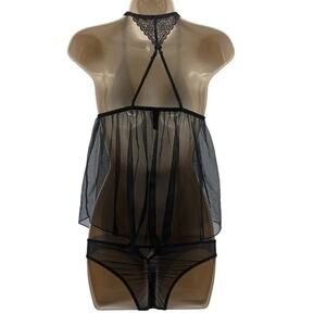 Victoria’s Secret Sexy Little Things Sheer Black Lace Baby Doll Slip Small