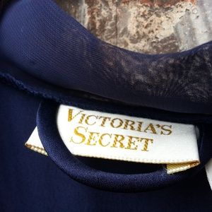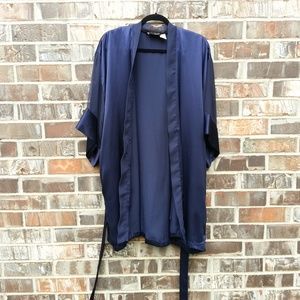 Great Condition Victoria's Secret Classic robe in midnight blue with sheer kimono sleeves and pockets. There are a few snags on right sholder, see pic.