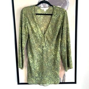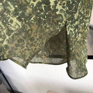 Size small. Olive/hunter/army green. Deep v plunge neck with keyhole design. Wide arms. Slits on the sides.