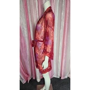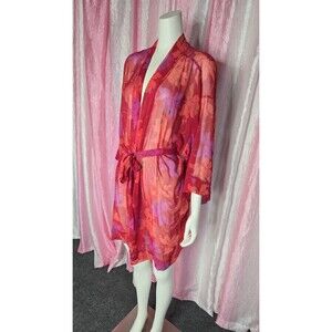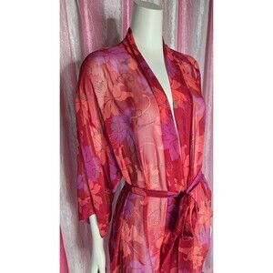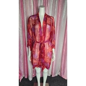 Victoria’s Secret Sheer Red Floral Tie Robe Kimono Size One Size