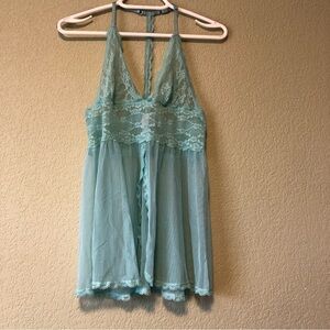 Victoria's Secret Sheer Teal Flyaway Babydoll with T-back S