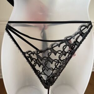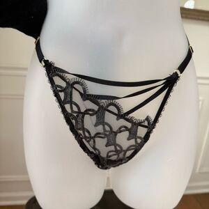 Victoria's Secret Shimmer Heart Embroidery Adjustable String Bikini Panty Black size medium.