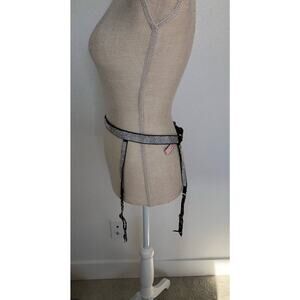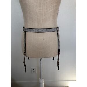This garter belt does not skimp on details. It is embellished with rhinestones three-quarters of the way around the waist, it separates in the back to a leopard print bar hook closure. The garter straps are half rhinestone, and the bottom half goes into leopard print. The hardware comes in silver. The straps and waist closure are adjustable. New with tags.