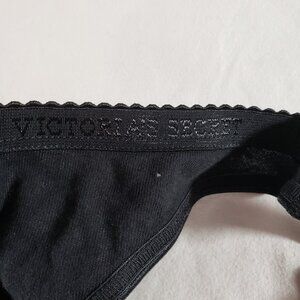 Victoria's Secret Signature Cotton Low Rise Thong Medium Black *Pinholes*