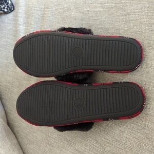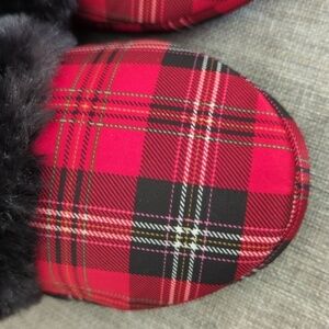 Victoria's Secret Signature Satin Red Black Plaid Slippers NWOT.