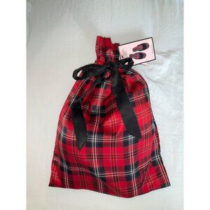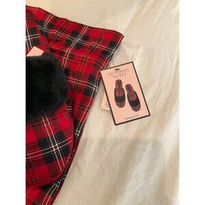 Victoria's Secret Signature Satin Slipper Plaid Red size Medium 7/8 NEW