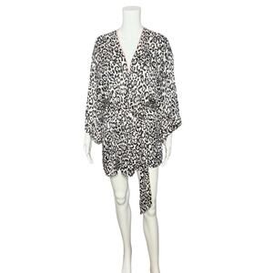 Victoria's Secret Silk Short Robe Pink Animal Print Tie Closure One Size
