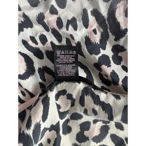 The Victoria's Secret Silk Short Robe in Pink Animal Print is a stylish and luxurious addition to any woman's wardrobe. Made from 100% silk, this robe features a tie closure, 3/4 sleeves, and a belted design for a flattering fit. The pink and cream black animal print adds a fun and playful touch, making it perfect for summer, fall, and spring seasons. Machine washable and lightweight, this robe offers both comfort and style, making it an ideal choice for lounging at home or getting ready for a special occasion with a touch of classic elegance. One Loop missing see pictures.