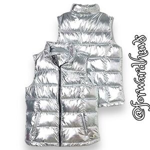 Victoria’s Secret Silver Elegance: Metallic Puffer Vest - Size Medium